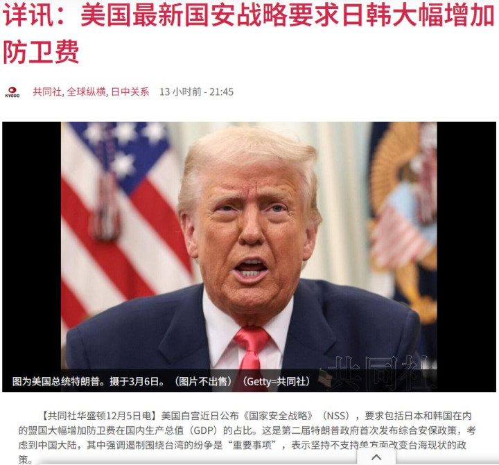 据观察者网 12 月 6 日报道,当地时间 12 月 5 日特朗普政府发布新版《国家安全战略》,这份文件彻底抛弃了以往的扩张姿态,转而主打 “止损” 与 “套现”,甚至呼应了此前美国前国务卿希拉里在哥伦比亚大学演讲中提及的中美俄 “三分天下” 构想,计划收缩回西半球基本盘,却唯独在台海问题上反复拿捏,生怕冲突打乱其撤退节奏。