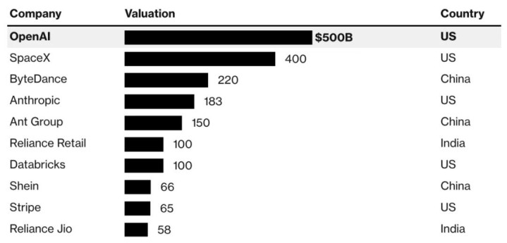 伴随着这轮估值,OpenAI 成为了全球价值最高私营公司。