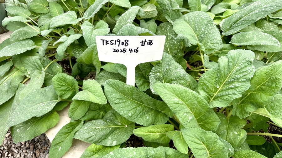 由于回来后是分批次种植的,这些“太空旅客”有的还在沉睡,有的已破土而出。部分甘西鼠尾草和栗色鼠尾草已经长出了绿油油的小苗,叶片狭长而翠绿,铭牌显示4月时它们还搬过一次“家”。朱唇鼠尾草则是“急性子”,已经蹿到了近一人高,还开出了红粉色小花,花瓣如唇形,有点像一串红。