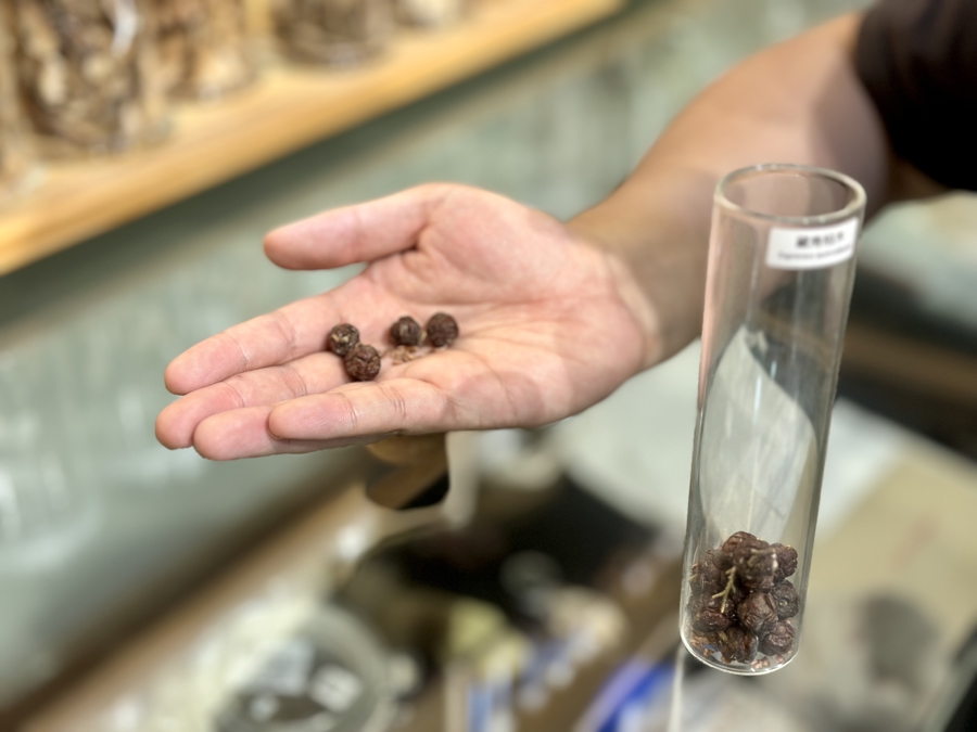 在辰山植物标本馆,展示着很多奇异种子。其中有一瓶种子,是钟鑫亲自爬上101.2米的“亚洲第一高树”藏南柏木采来的。倒在手心中的,是一粒粒直径1厘米左右的小球果,每颗里都藏着四五十粒种子,讲述着地球上最庞大生命体的秘密。