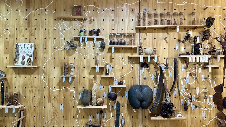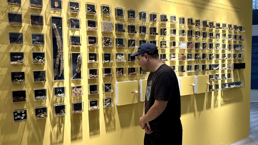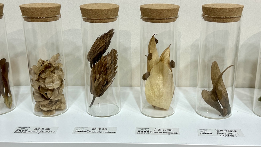 “我们特意设计放置了一部分种子,可以让游客们触摸,”侯汝凝说,“这也是我们听取了首届种子展的游客反馈后,今年采用的创新形式,希望大家可以亲手感受种子质地。”
