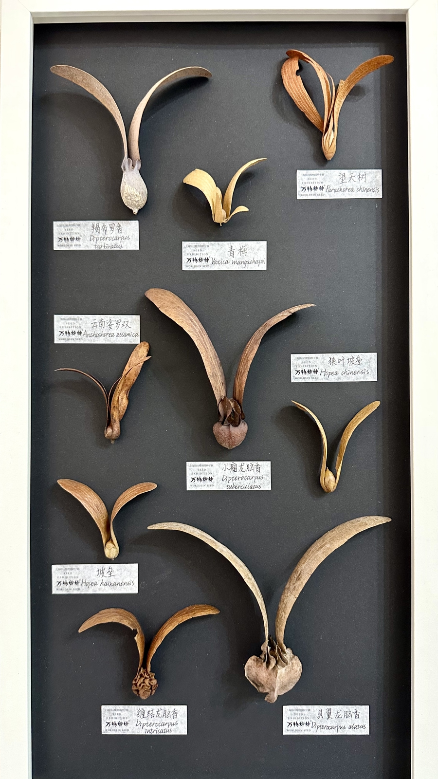“去年种子展上展出了一种龙脑香种实,就有游客问我们有没有其它的。所以今年,我们展示了9种龙脑香科植物种实,国内能见到的基本都囊括了。”辰山植物园园艺景观部助理工程师侯汝凝笑着说。