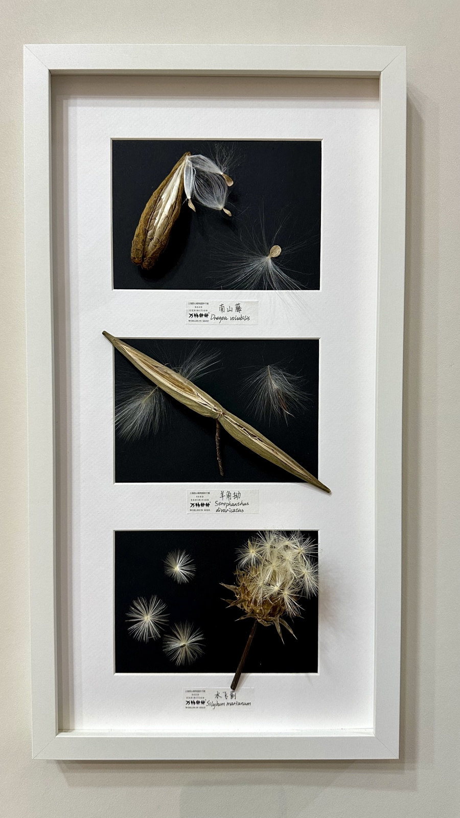 展中所见,无不令人惊叹于微小生命的“空中之舞”。最有趣的要数“网红选手”、国家一级保护植物望天树和东京龙脑香的种实,因其圆润外形与薄膜状的翅膀结构酷似《哈利·波特》中的“金色飞贼”而在网上大热。策展团队在热带雨林收集了大大小小的“飞贼”,做成美丽的艺术相框,令人大开眼界。