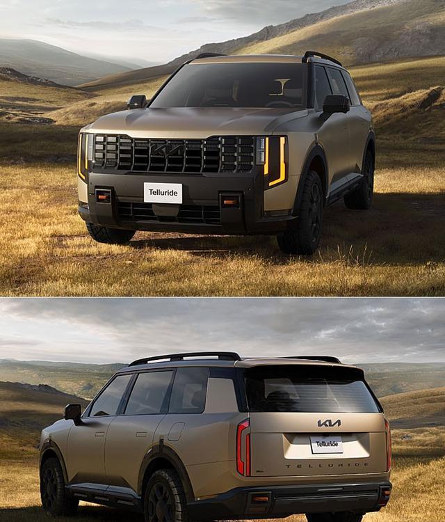 大改款 Telluride 车系的外观设计于新车正式登场前已先行亮相,外观设计延续了品牌「Opposites United」理念,在放正的车身造型基础下,车头两侧直立式的 LED 昼行灯与头灯组,则拥有与 EV9 颇为神似的设计风格,但较为特别的是大改款 Telluride 车系采用大型黑色格栅水箱护罩,并向下延伸至保杠位置,搭配黑色起亚字形厂徽,打造更为粗旷的视觉风格。