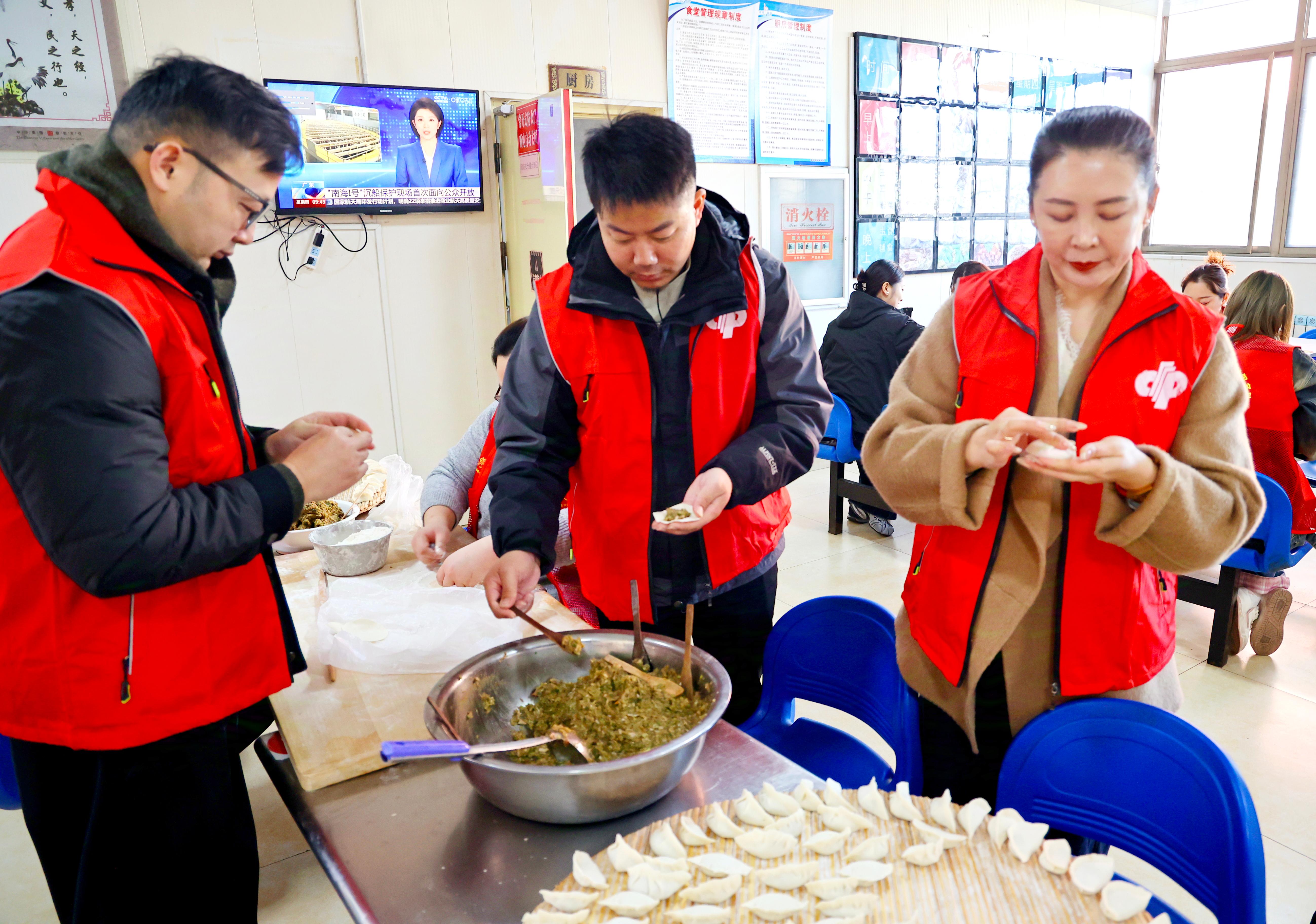 活动现场暖意融融,爱心人士们化身志愿者,分工协作传递温情。室内一角,志愿者正手法轻柔地为老人修剪头发,厨房里更是热闹非凡,大家围坐在一起,揉面、调馅、擀皮、包饺子,动作娴熟,配合默契。热气腾腾的锅里,翻滚的不仅是美味,更是志愿者们浓浓的关爱与祝福。